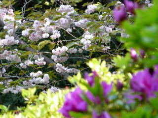 (大紫つつじが咲き始め、後方は八重桜)